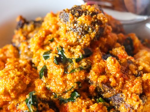Delicious soup made with melon seeds, palm oil, seasoning and crayfish.